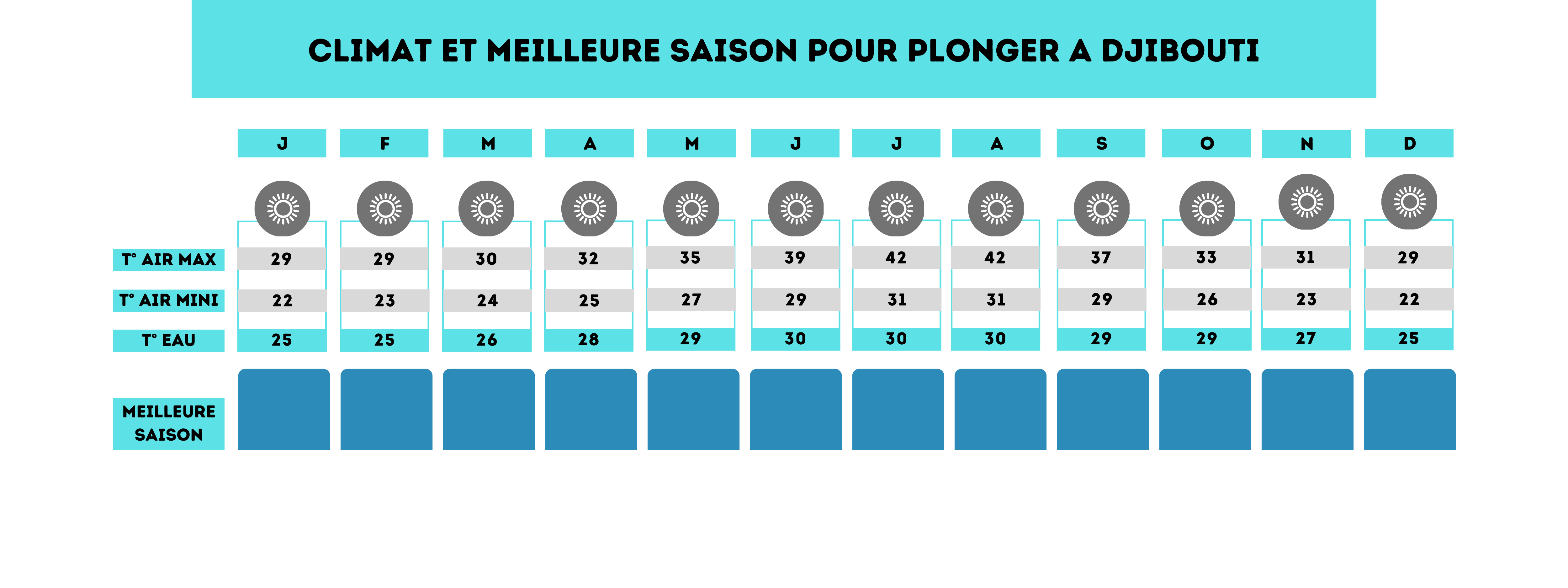 Le climat à Djibouti est aride et désertique, typique des régions de la Corne de l'Afrique. Voici les caractéristiques principales du climat à Djibouti :
