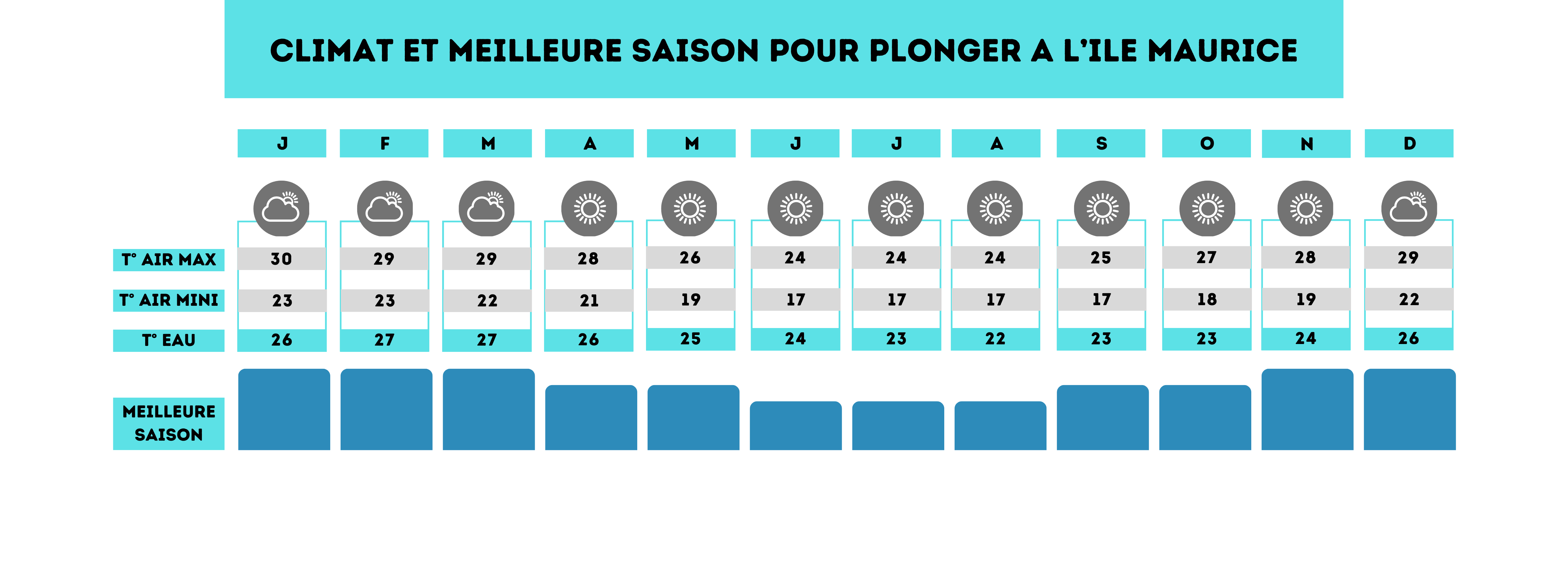 Les fonds marins de l'île Maurice sont riches de magnifiques coraux, plusieurs espèces rares et des épaves faciles d'accès.Par ailleurs, la région offre également la possibilité d'observer les baleines : les baleines à bosse sont visible d'avril à octobre et les cachalots tout au long de l'année. Les deux plongées journalières se font généralement le matin.