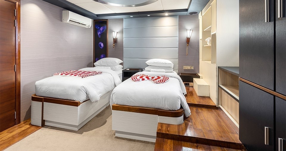 Le Seafari-Explorer 2 est un bateau très spacieux de 43 mètres de long. Il peut accueillir jusqu'à 26 personnes à bord et comprend 14 cabines (lits doubles ou lits jumeaux), elles-mêmes réparties sur 4 ponts. Toutes les cabines possèdent une climatisation, une salle de bain privative, une télévision ainsi qu'un coffre-fort. Les serviettes de bain, un savon et un sèche chevaux sont fournis dans toutes les salles de bains. Un accès au WIFI est également disponible sur le bateau.