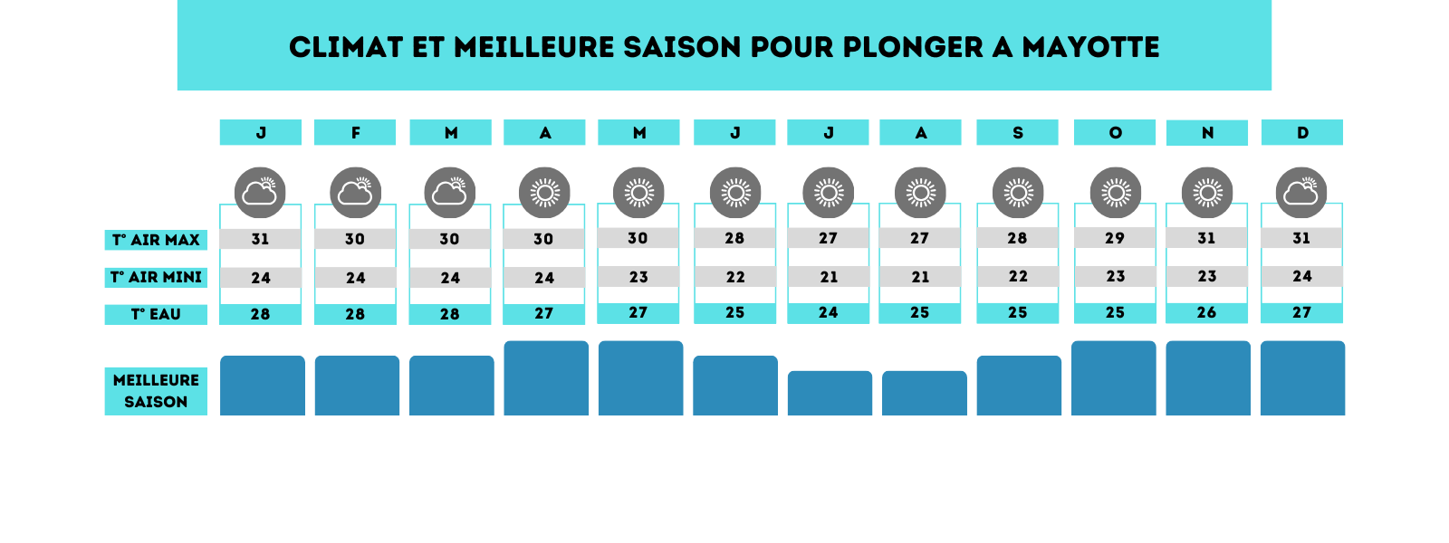 Le climat à Mayotte est de type tropical, caractérisé par deux saisons principales : une saison sèche et une saison des pluies.