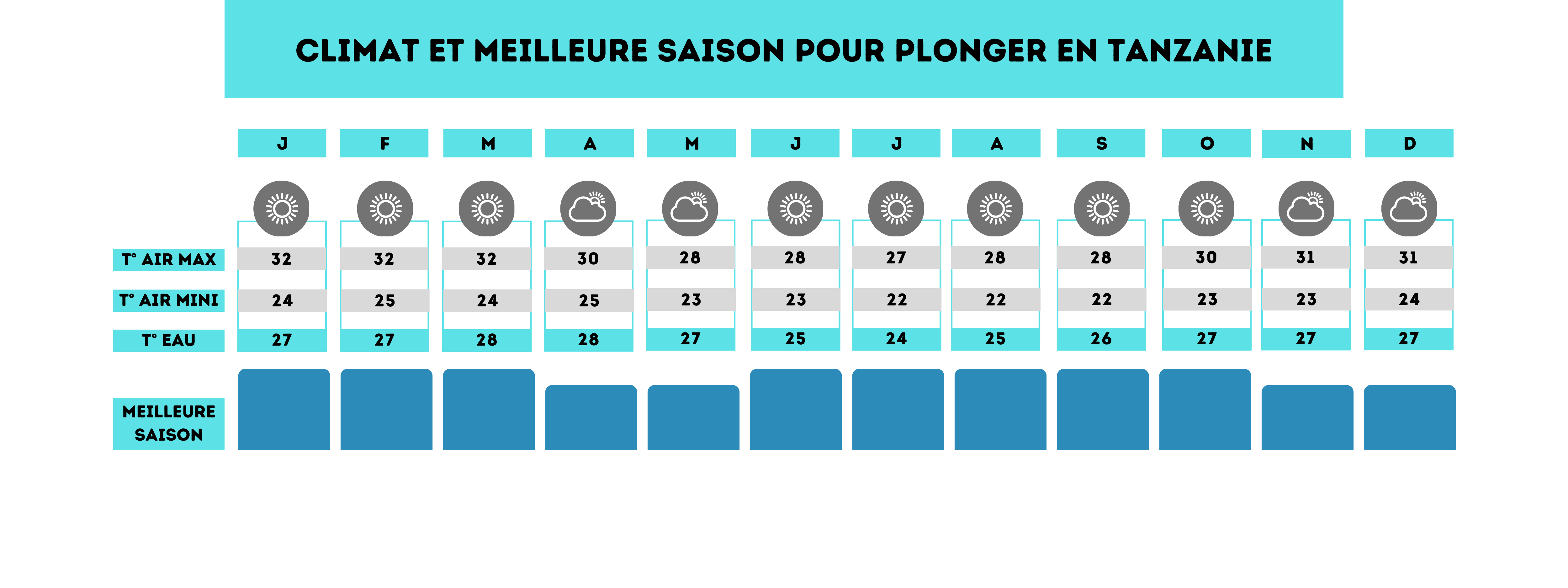 En Tanzanie, le climat varie considérablement selon les régions en raison de sa géographie diversifiée, comprenant des plaines, des montagnes et des côtes. Voici un aperçu général du climat en Tanzanie :